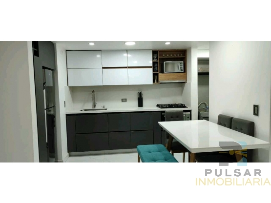 Su salón comedor es acogedor, perfecto para compartir en familia, y la cocina semi integral ofrece muy buenos acabados, muebles auxiliares y alacena integrada en el espacio de la nevera, ideal para mantener todo organizado.
